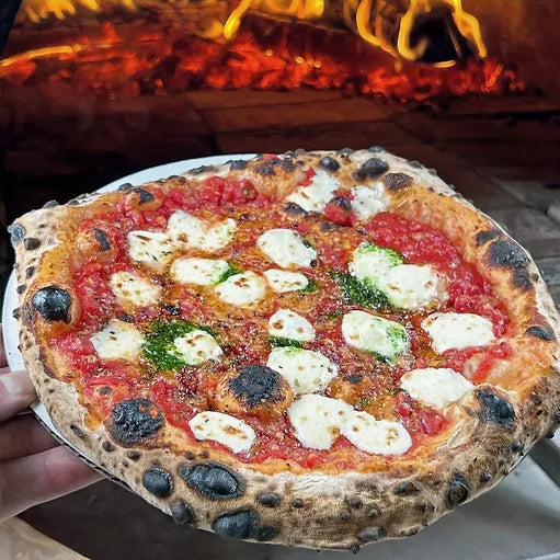 Bake in a conventional oven until deep golden brown and cooked through, about 25–30 minutes. If using a wood-fired oven, you’ll achieve that beautifully blistered crust in just 2–3 minutes.